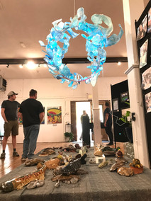 Madison High School students in Kerstin Davis' art class created an installation inspired by the French Broad for the K-12 Art Exhibition at Madison County Arts Council. Ivy River Partners gave a presentation to the class about local water issues, water quality monitoring, and some rare and cool species found in our local waterways. The students work, seen above, consists of clay sculptures of important species, a water feature, and a giant hand sculpture representing a map of the French Broad, entitled "It's In Our Hands". Come see their work and others through May 7th at the Madison County Arts Council. 90 S. Main St., Marshall. Mon-Fri 10-5, Sat 10-3.